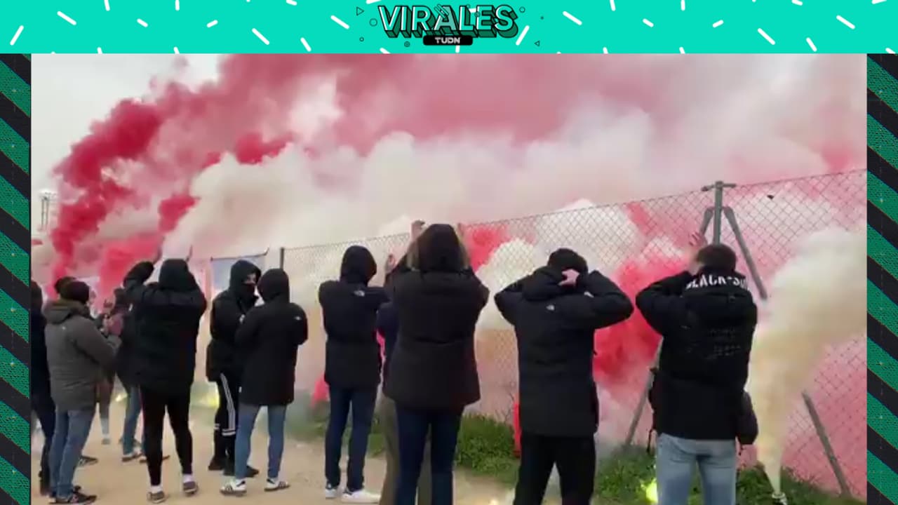 Hinchas del Atlético de Madrid se presentaron para dar ánimos a los jugadores tras la derrota en Champions.
