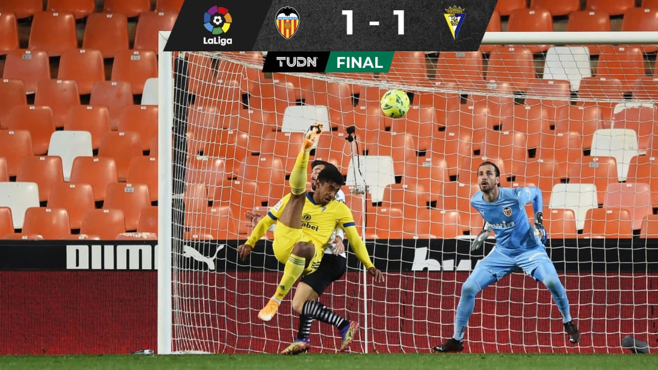 El delantero hondureño regaló este lunes una espectacular anotación en el empate del Cádiz ante Valencia.