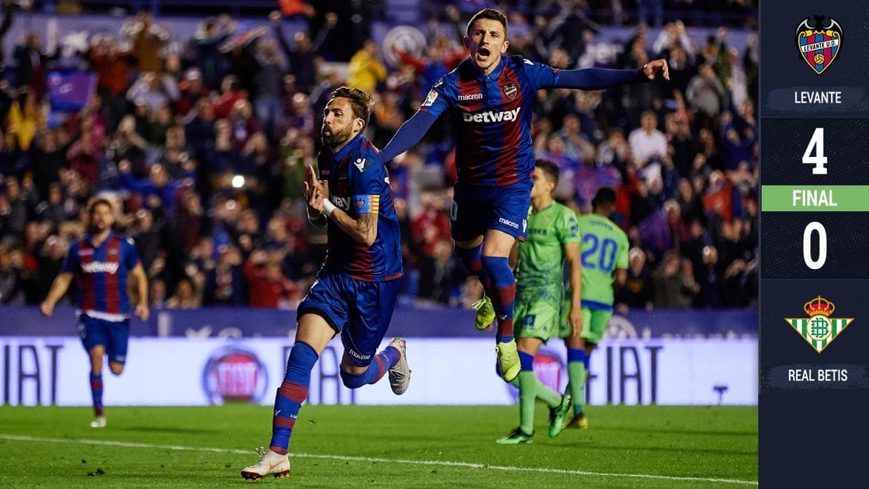 El Real Betis se aleja del sueño europeo de la próxima temporada tras caer 4-0 ante el Levante y el puesto de Quique Setién pende de un hilo hoy más que nunca.