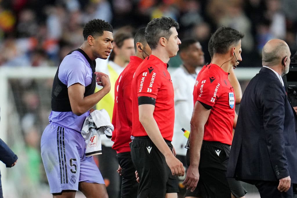 Bellingham cabeceó a la red un centro de Brahim Díaz que habría supuesto el 2-3 para su equipo en el momento en el que el árbitro señalaba el final del partido, sin dar validez al tanto, y después fue expulsado con tarjeta roja directa por dirigirse "en actitud agresiva y a gritos", según el acta arbitral.