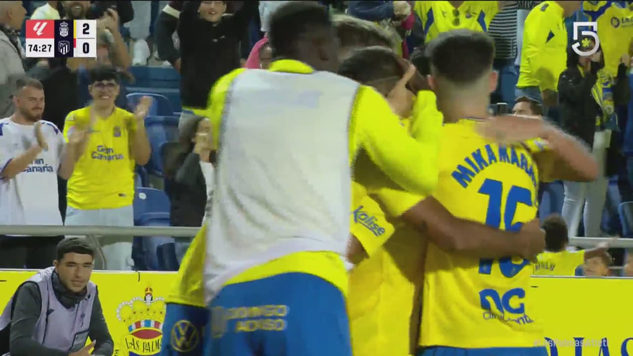 Las Palmas ejerció presión alta y recuperó el balón en la salida del Atlético para agarrarlo mal parado y que aumentara la ventaja con un zurdazo de Benito Ramírez del Toro al minuto 75.
