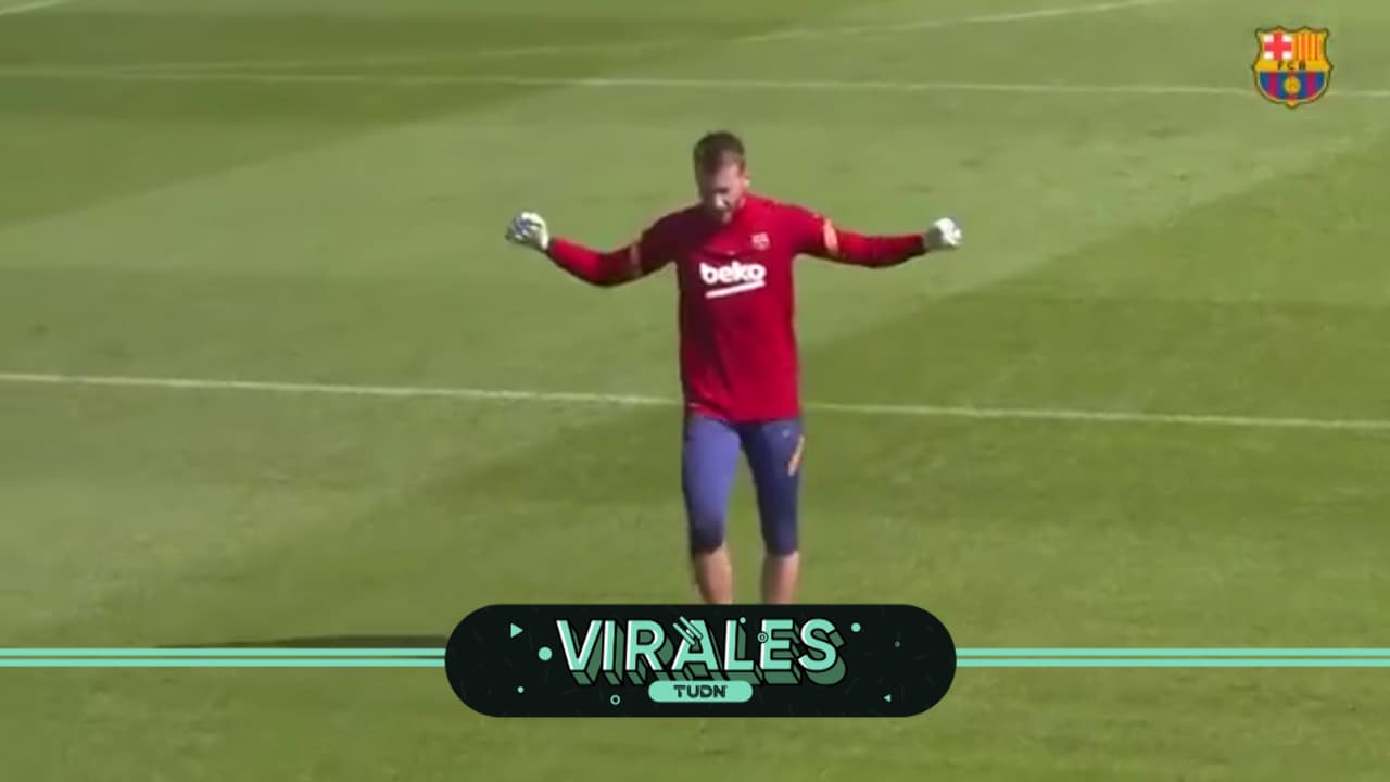 Neto y Arnau Tenas se retan probando su precisión con tiro desde la media cancha buscando pegarle al travesaño.