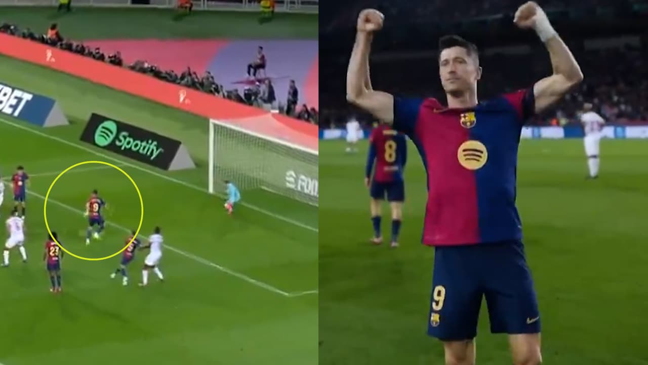 Robert Lewandowski brilló con un doblete. Al minuto 24 abrió el marcador en el Estadio Olímpico de Montjuic gracias a un penal que consiguió Raphinha que causó polémica por el contacto leve que recibió el brasileño dentro del área.