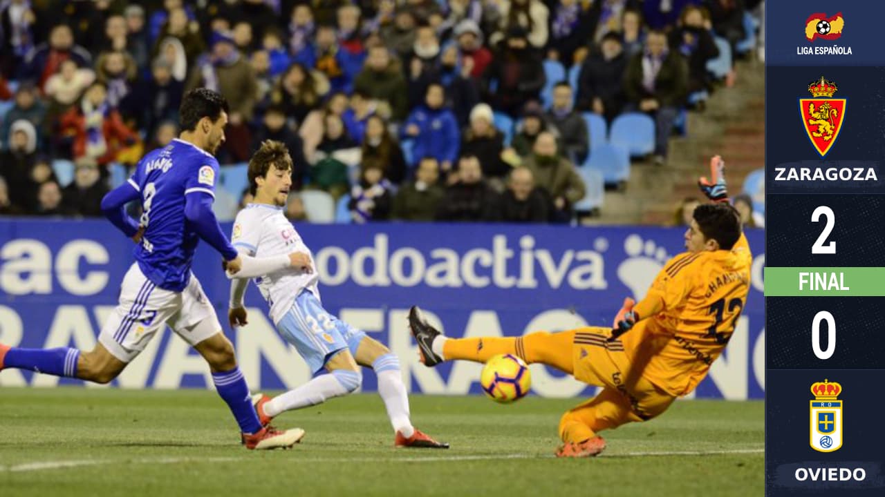 Con el zaguero mexicano Oswaldo Alanís los 90 minutos jugando como líbero en línea de tres centrales, el Real Oviedo cayó de visita en La Romareda del Real Zaragoza.