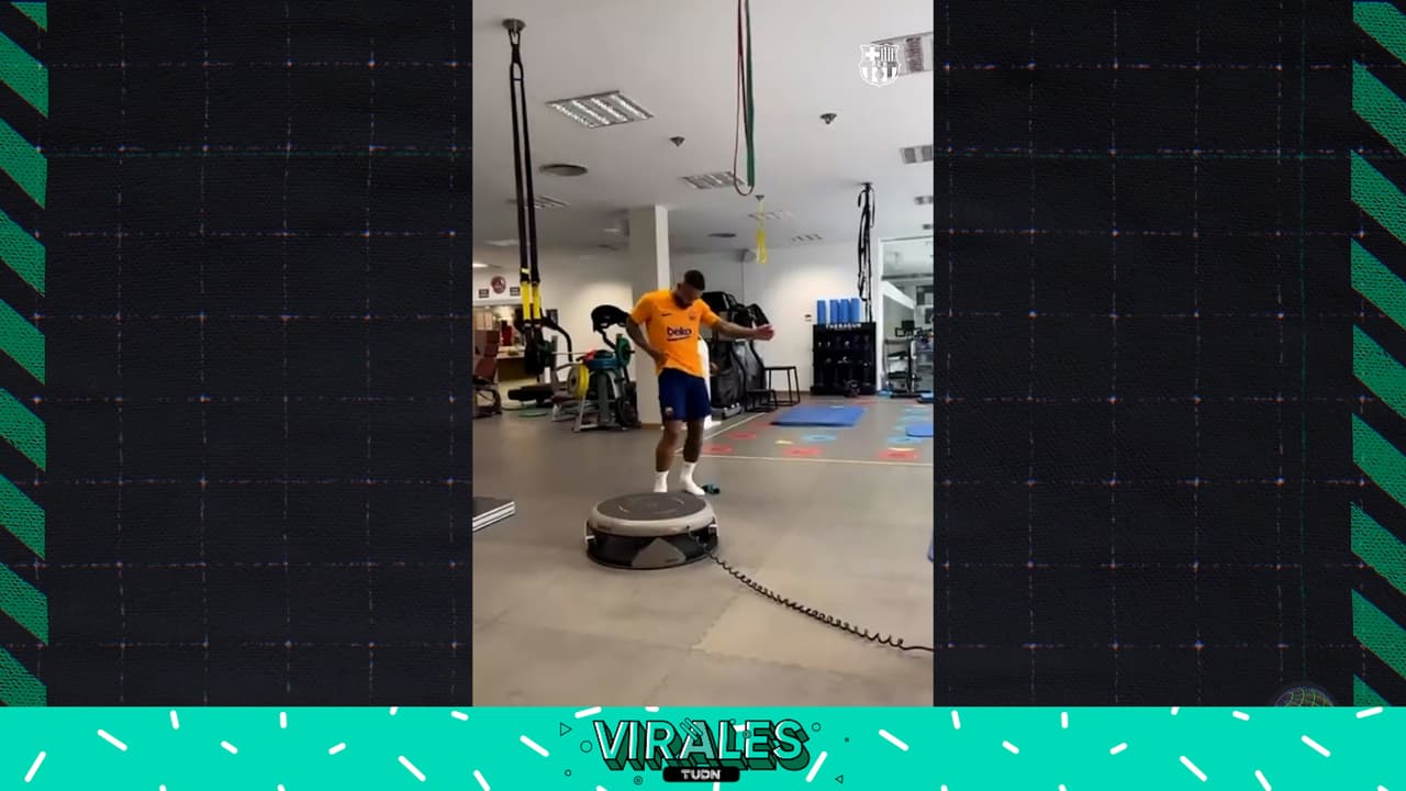 El holandés del Barcelona fue grabado por Ronald Araujo dando sus mejores pasos en las instalaciones de entrenamiento del club en España.