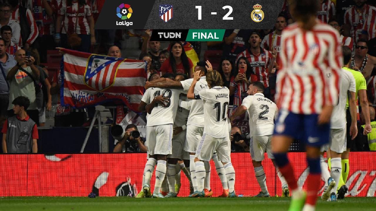 El Real Madrid dio una nueva muestra de su gran pegada y derrotó 1-2 en el derbi de la capital española al Atlético de Madrid en el Metropolitano, triunfo que los deja líderes con pleno de puntos tras seis jornadas de LaLiga.
