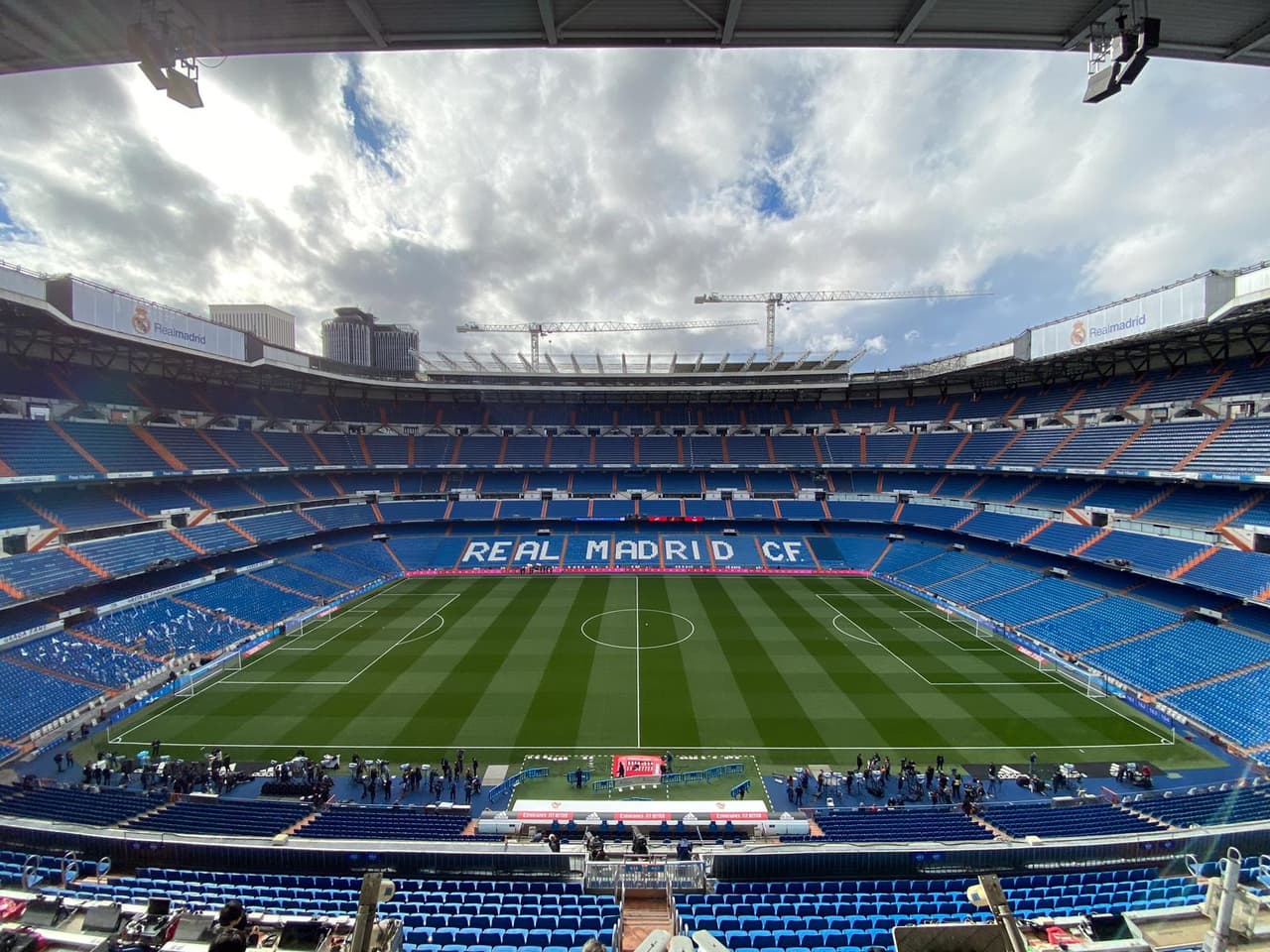 Lleno en el Estadio Santiago Bernabéu para ver el primer Clásico de España oficial de la temporada, que sigue su remodelación en varias zonas.