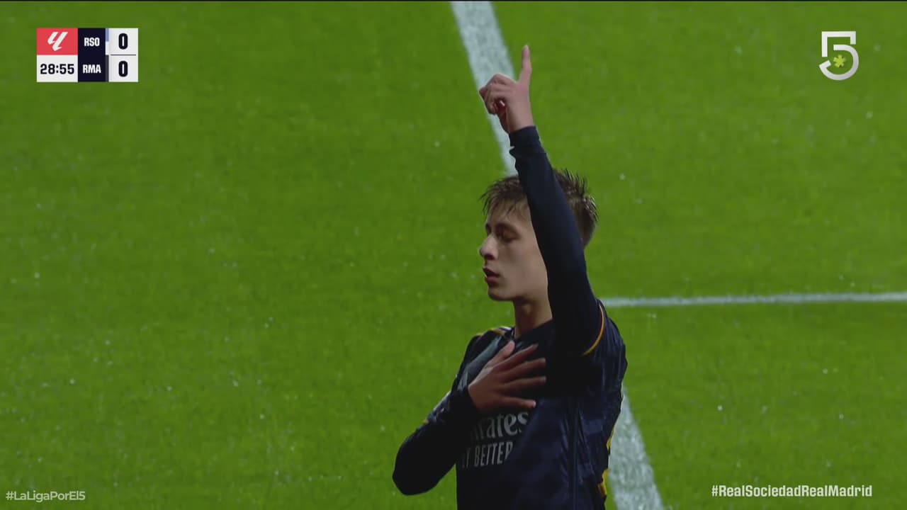 29' Balón suelto por sector derecho, la zaga donostiarra hace el ridículo y la pelota queda a perfil izquierdo de Arda Güler para abrir el marcador en la Reale Arena.