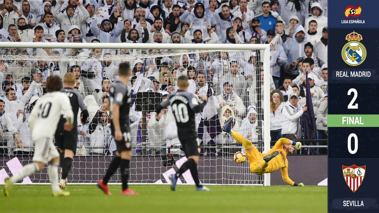 De momento y con esta victoria en la jornada 20 de la Liga, Real Madrid brincó al tercer sitio de la tabla general, luego de sumar seis unidades. Por su parte, Sevilla descendió al cuarto sitio al quedarse con 33 puntos.