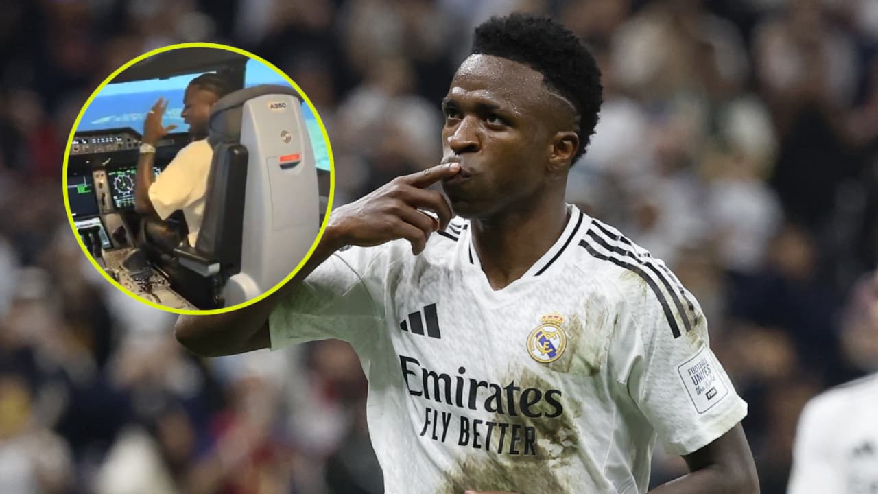 Vinícius dejó el futbol por unos momentos para ser copiloto de un avión durante su visita en Dubái, Emiratos Árabes Unidos, lugar donde fue la ceremonia de premiación.