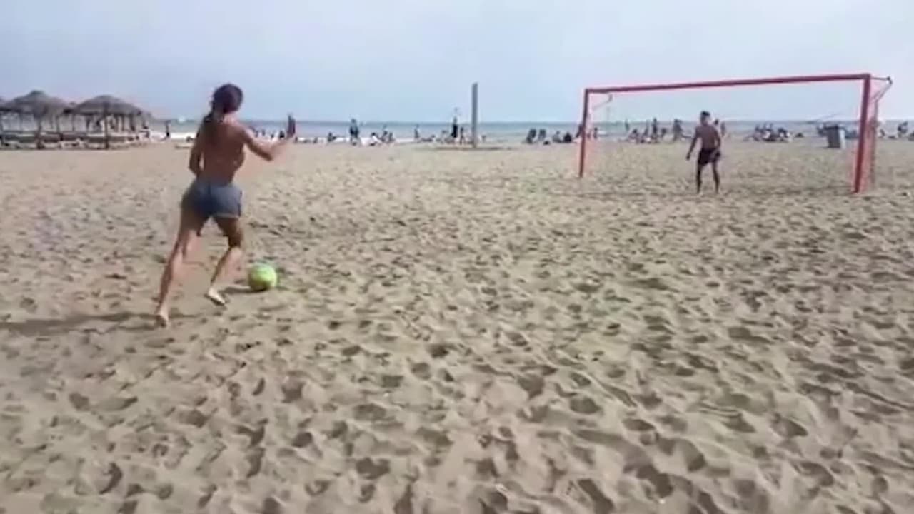La novia de Koke demostró que le pega al balón mejor que él: golazo al ángulo