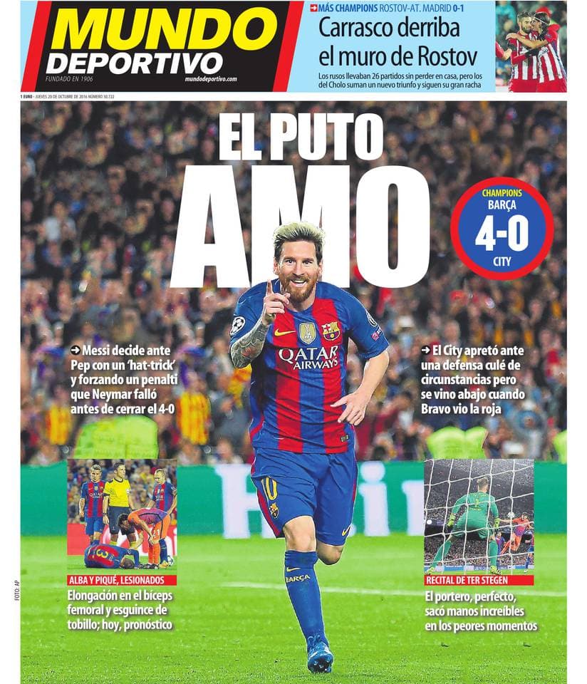 El rotativo español Mundo Deportivo tituló: El “El Puto Amo”, a forma de ensalzar la actuación del argentino en el torneo de clubes más importante del mundo.