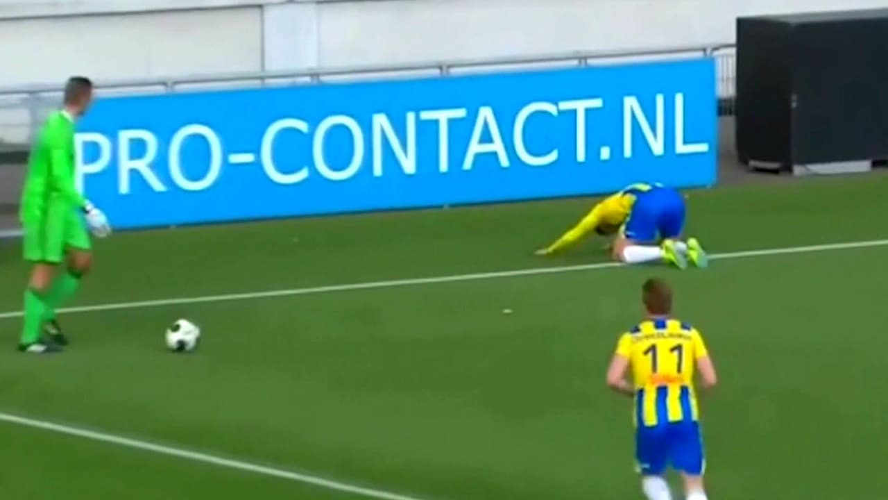 Lo de Chiel Kramer, del Almere City de la Segunda de Holanda, fue tan insólito como inexplicable. Tapó bien un mano a mano, se quedó con la pelota en los pies, pero se distrajo y lo pagó carísimo.