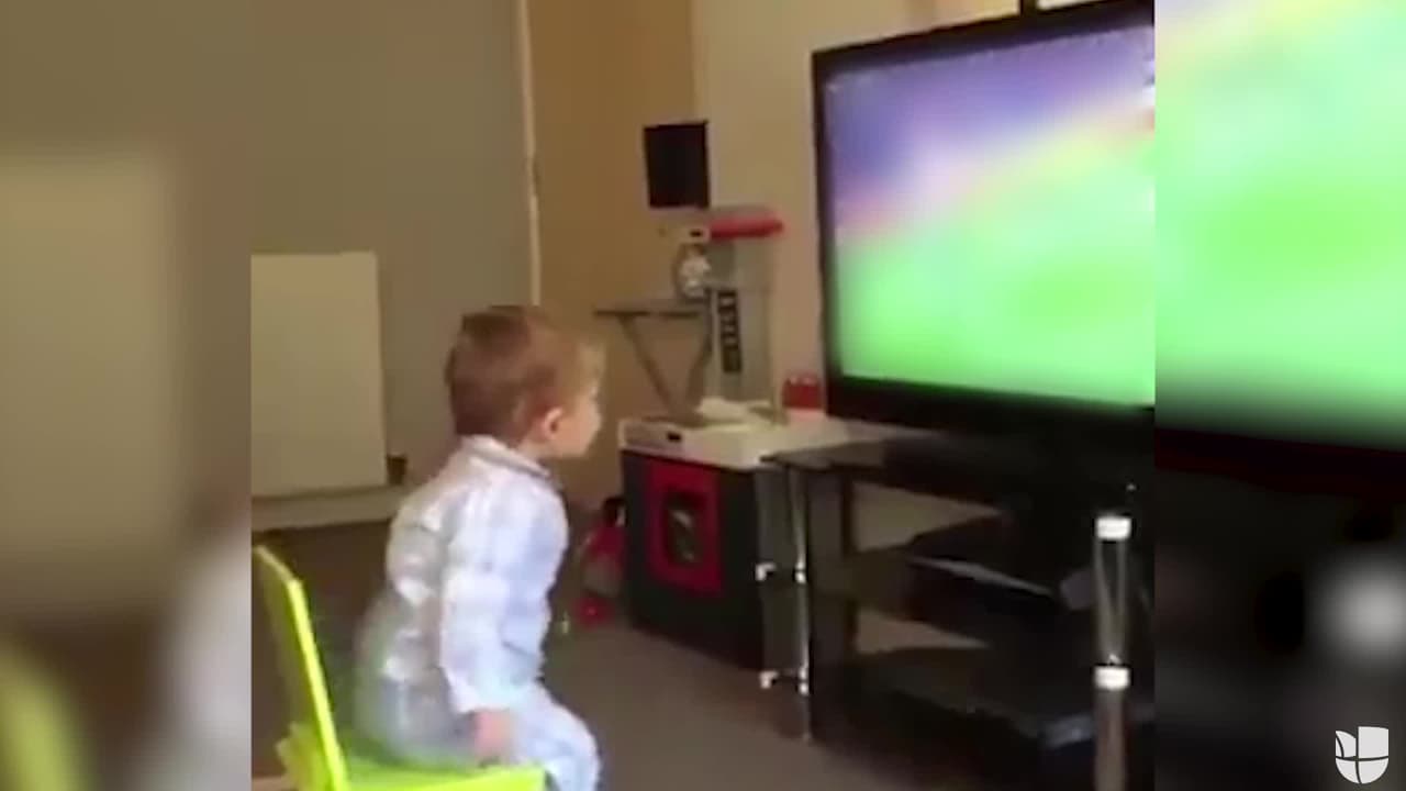 La tierna celebración de un pequeñín al ver que su equipo marca gol