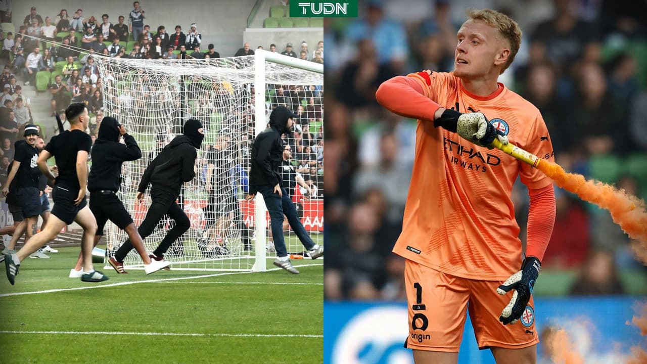 El partido entre Melbourne City y Melbourne Victory fue suspendido a los 20 minutos tras la invasión de fanáticos que agredieron al guardameta del City.