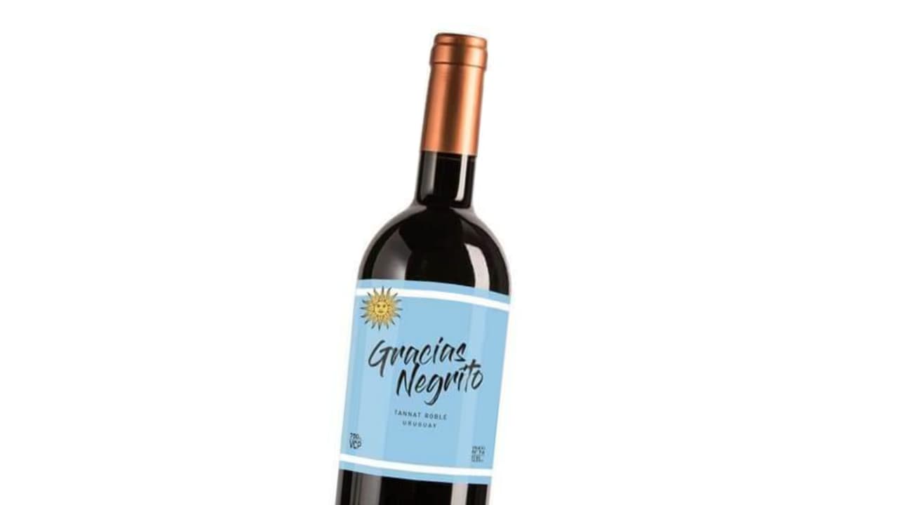 Silvina Rosas es la empresaria que se encargó de etiquetar su vino, un Tannat oscuro y de buena calidad, de acuerdo a la descripción que ella misma da, con la frase “Gracias Negrito” y un fondo azul celeste como el de la camiseta de la Selección de Uruguay.
