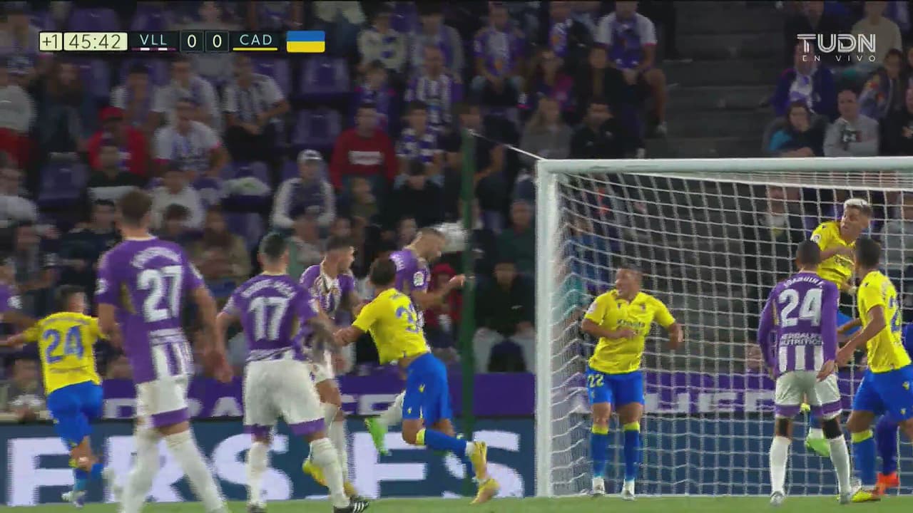 El guardameta recorre bien su línea y evita la anotación del Valladolid a instantes del descanso.