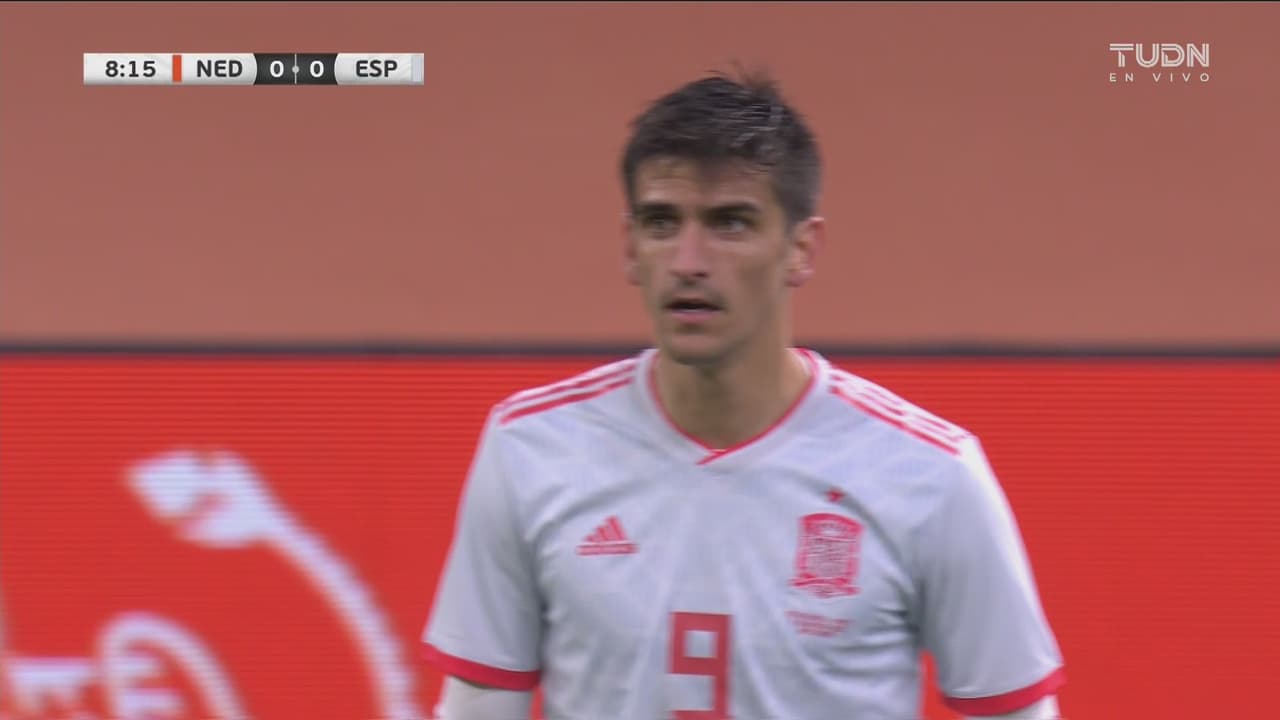 ¡Le faltó efecto al balón! Tiro de Gerard Moreno por encima del arco