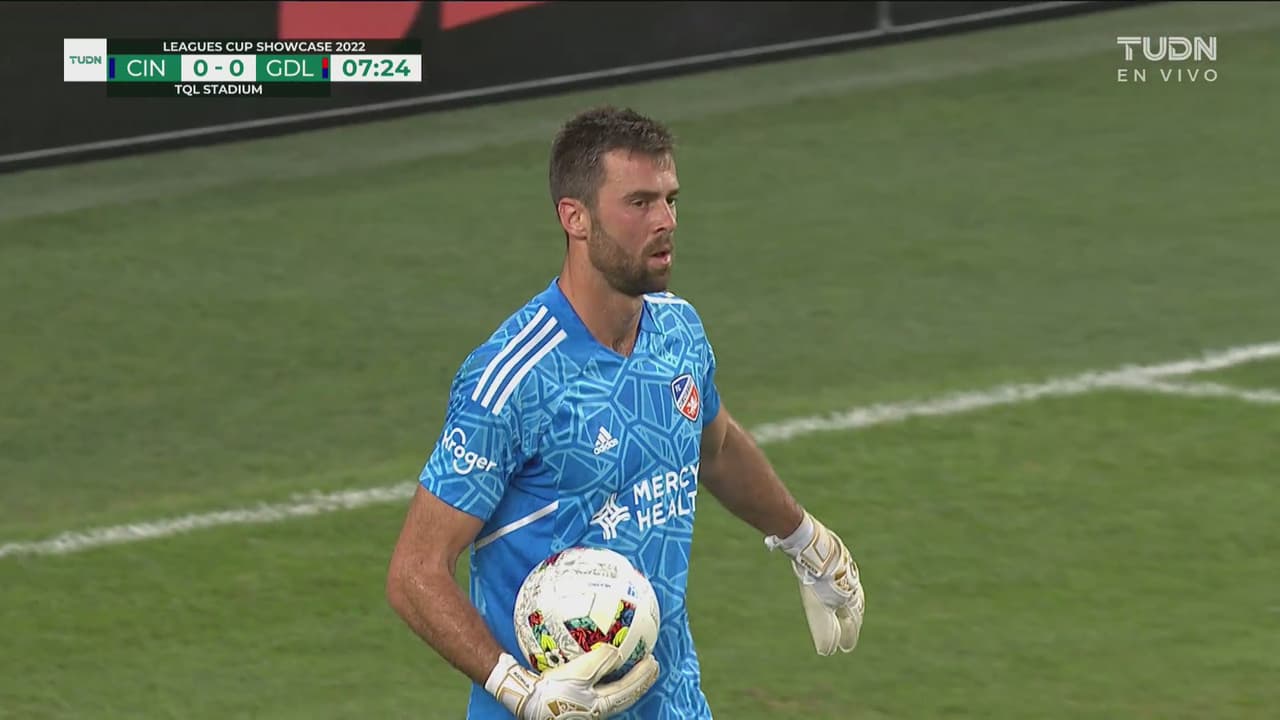 El jugador de Chivas la prendió de aire y salió a la posición del arquero de Cincinnati al 11’.