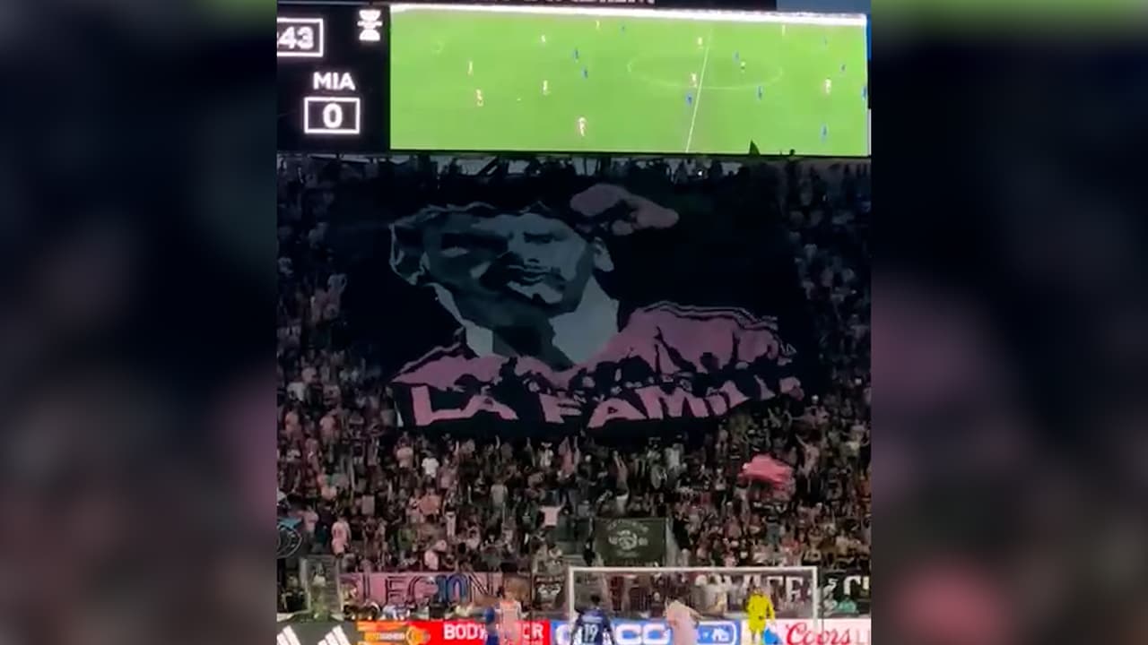 La barra del Inter Miami desplegó un imponente telón para darle la bienvenida al astro argentino.