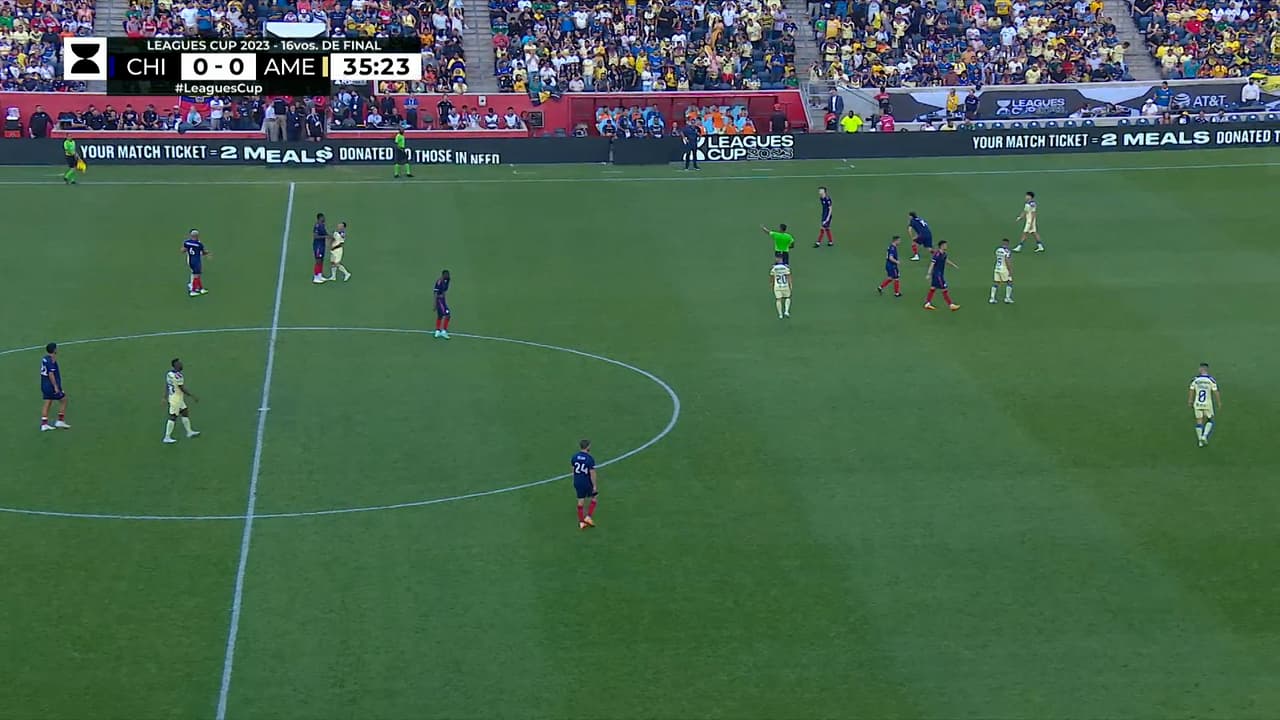 El zaguero del Chicago Fire 'aplacó' al jugador azulcrema tras una falta sobre su compañero.