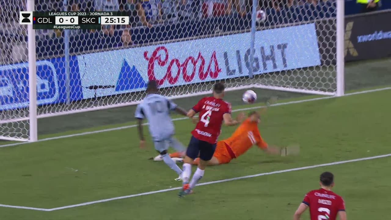 ¡Chicote salvador! Kinda disparó a portería pero Calderón lo impidió