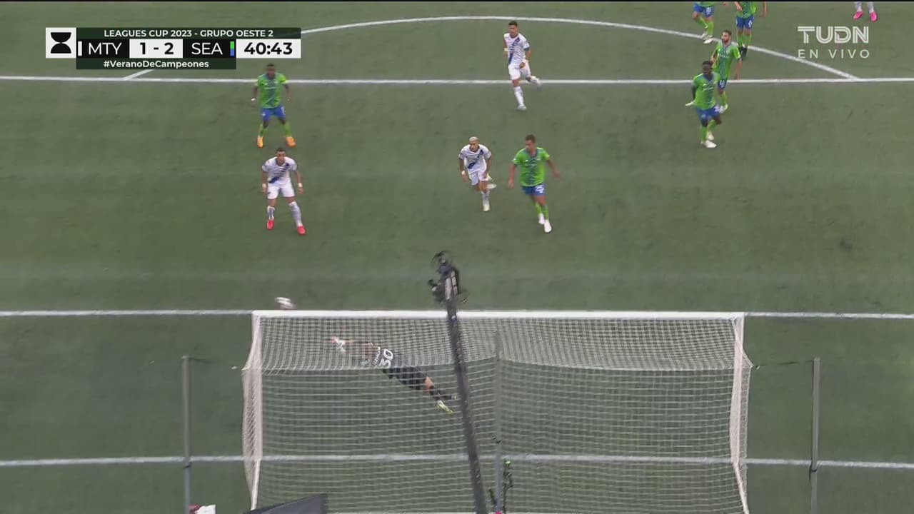 Rayados busca el empate antes del descanso, el ecuatoriano se crea un espacio y dispara sobre el arco de Cleveland.