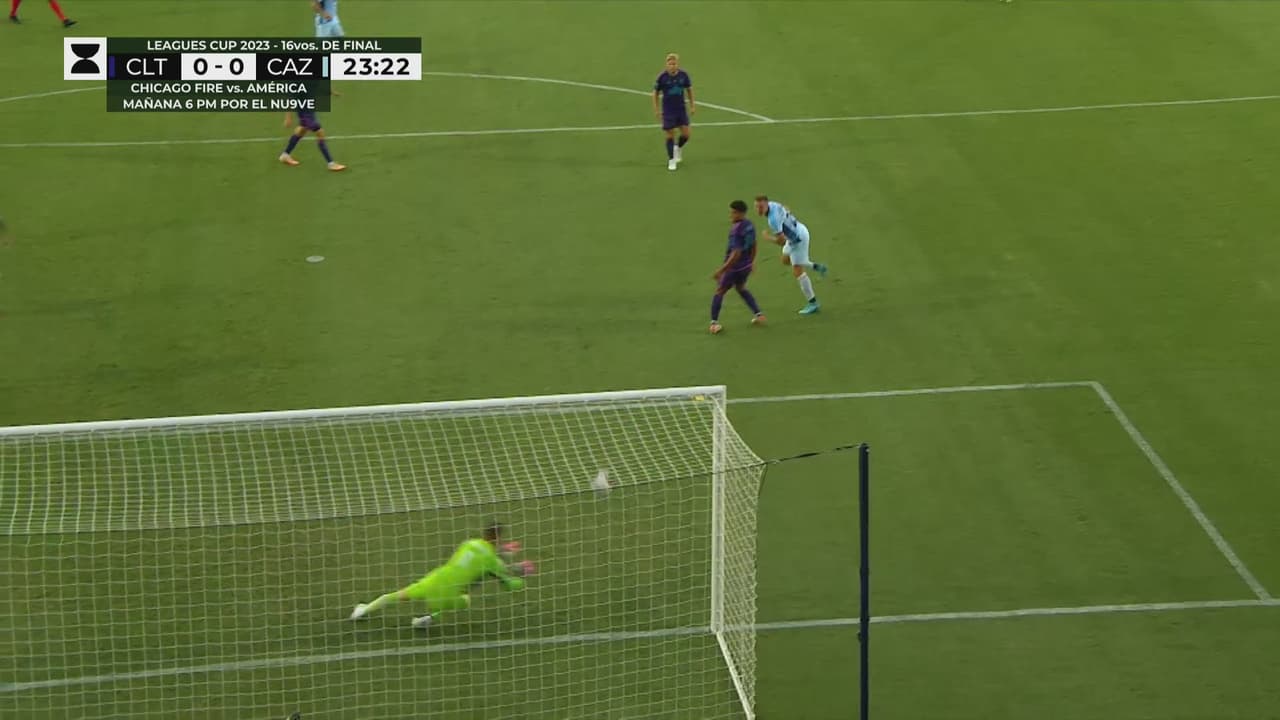 Primero Westwood rechaza el balón de Escobar y después, el cancerbero de Charlotte ataja a Carlos Rotondi.
