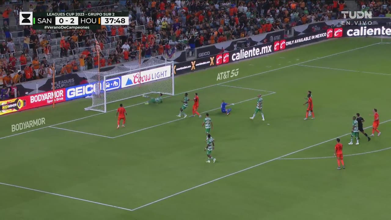 En una gran jugada de Houston, HH hizo una vaselina sobre Lajud y Omar se barrió justo a tiempo para evitar el tanto.