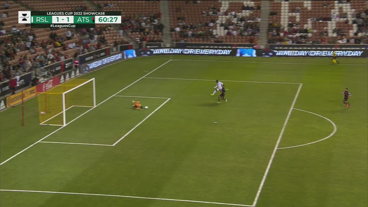 El delantero del Real Salt Lake no pudo definir con el derechazo cruzado ante el arco de Atlas al 60’.