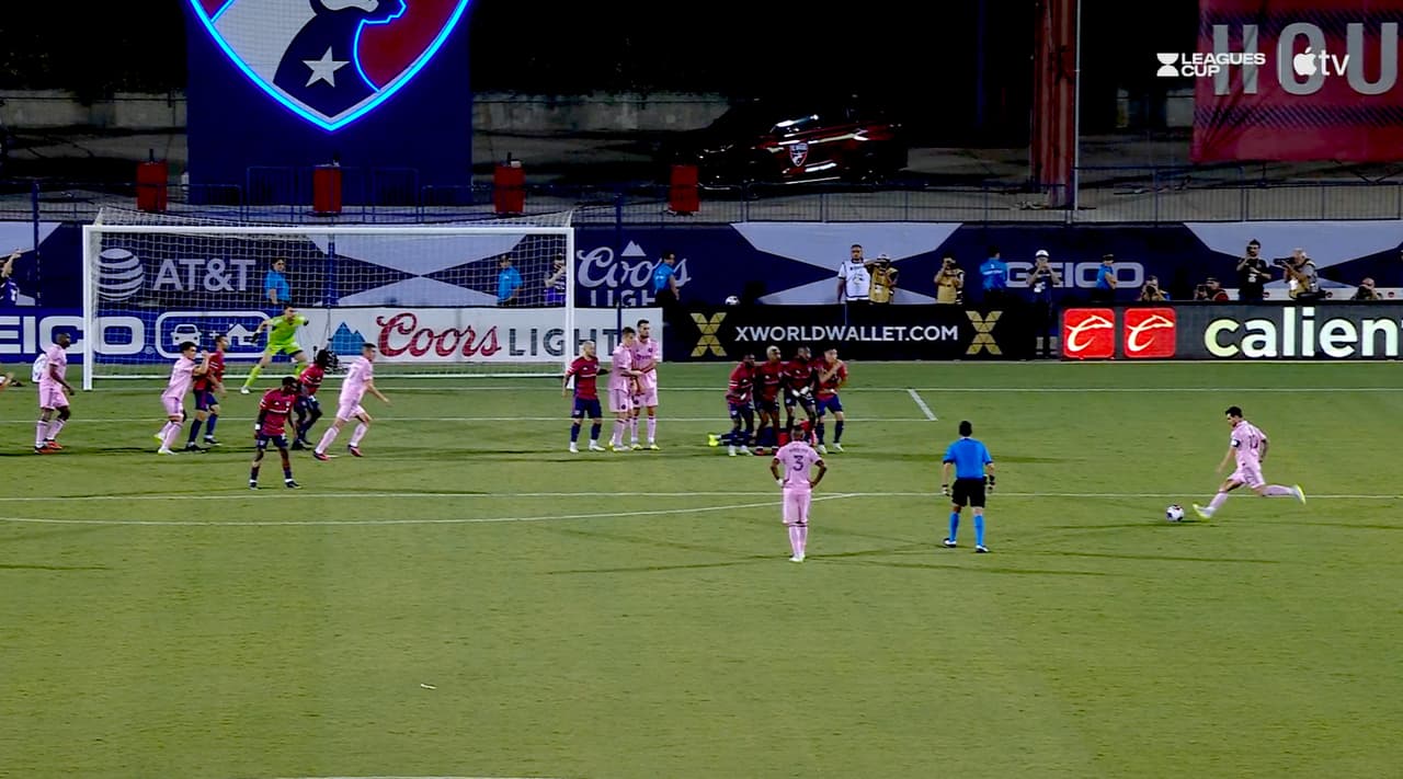 Y en el 84, después de una falta sobre Robert Taylor en la puerta del ángulo derecho del área de Dallas, Leo Messi marcó -otra vez- un brillante gol de falta directa para conseguir la igualdad 4-4.