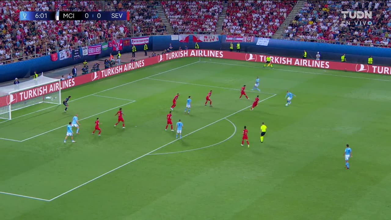 Tiro atajado junto al lado derecho de la portería. Cole Palmer (Manchester City) zurdazo desde fuera del área. Asistencia de Phil Foden.