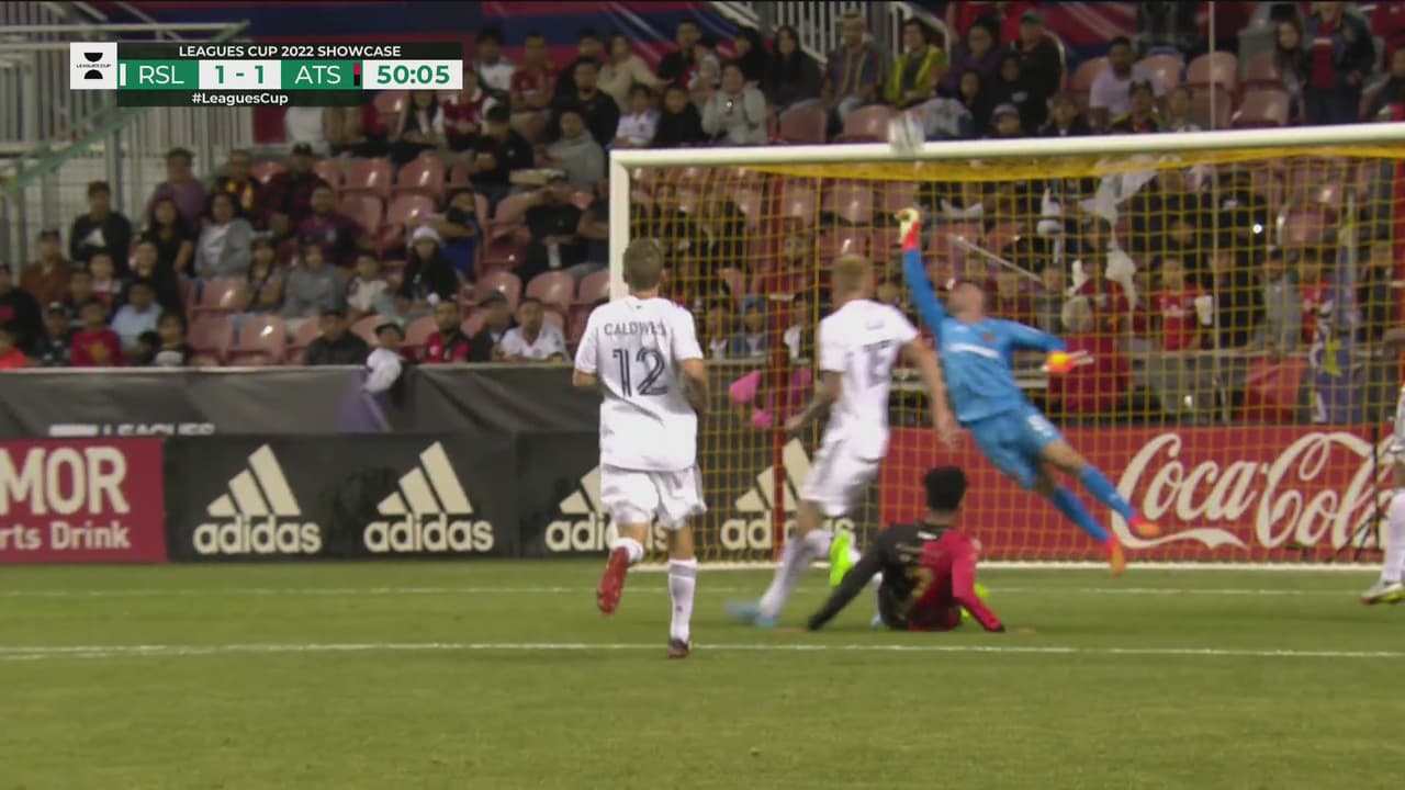 El jugador del Atlas recibió y se quitó al defensa para buscar el ángulo del arco del Salt Lake al 49’.