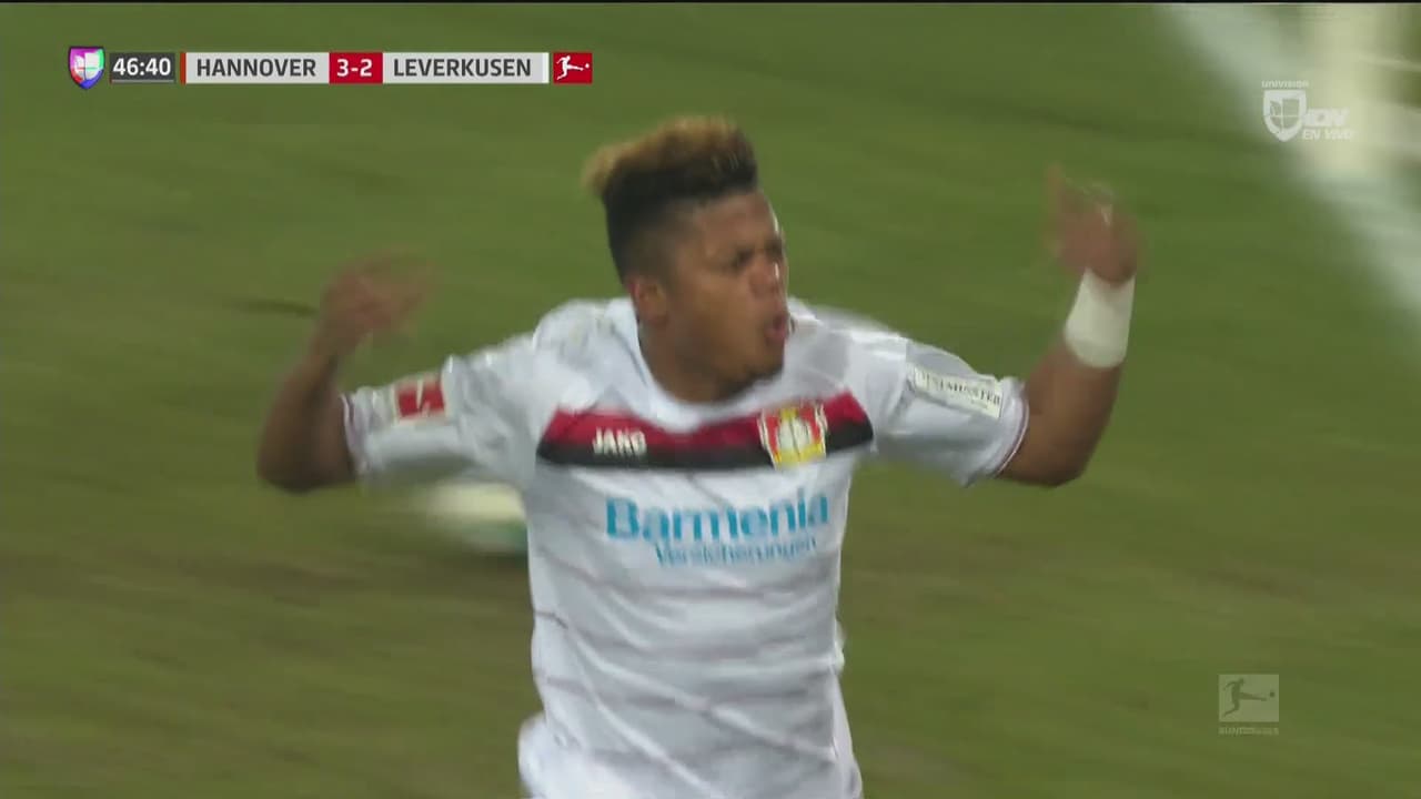 El delantero del Leverkusen fulminó a la defensa del Hannover con una escapada a toda velocidad y firmó un buen gol con un tiro a un costado del arquero.
