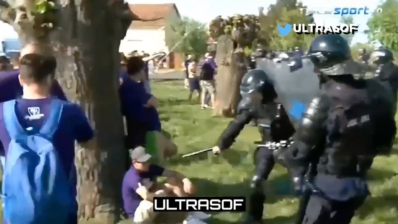 Después de unas negociaciones fallidas, los ultras del Poli Timisoara empezaron un conflicto afuera del estadio.