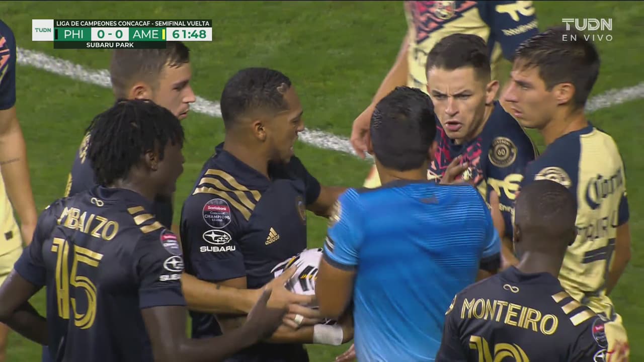 Las Águilas se salvaron en varias ocasiones del gol en contra. En el primer tiempo, que fue detenido varias veces por la intensidad del Philadelphia traducida en faltas, Pedro Aquino se barrió para tapar un disparo de Cory Burke que amenazaba al marco azulcrema.
