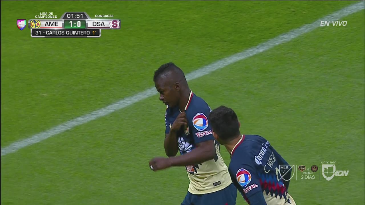 Darwin Quintero, en lo que pudo haber sido su partido de despedida de las Águilas, tomó la pelota, avanzó y ante la complacencia de la defensa, picó la pelota para techar al arquero tico y abrir el marcador en el coloso de Santa Úrsula.