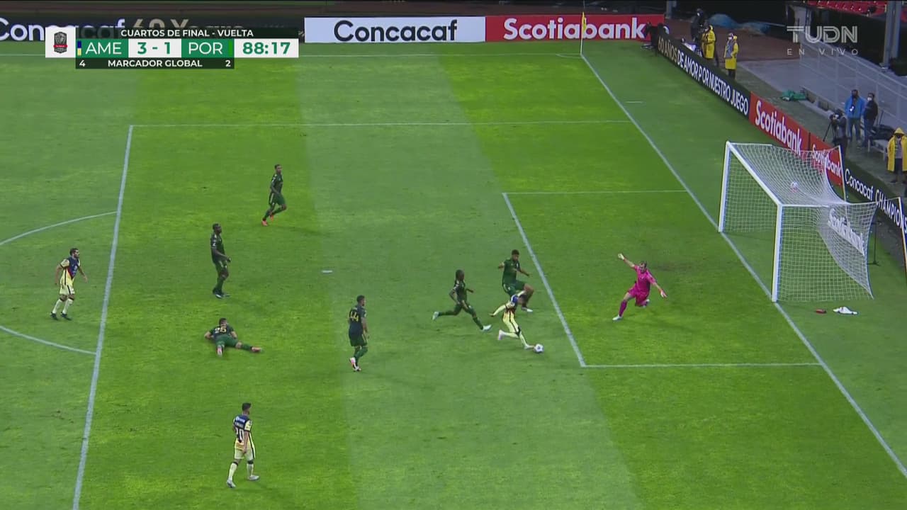 Con el arbitraje de nuevo como protagonista, pero con solvencia en ofensiva, América venció 3-1 (4-2 global) al Portland Timbers y amarró su pase a las Semifinales de la Concacaf Champions League.
