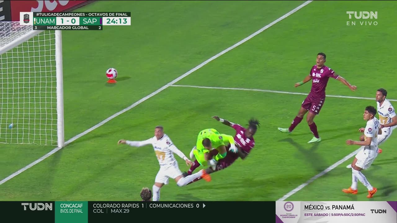 Los jugadores iban en la búsqueda de un balón por aire, pero terminaron chocando de fea forma al 24’