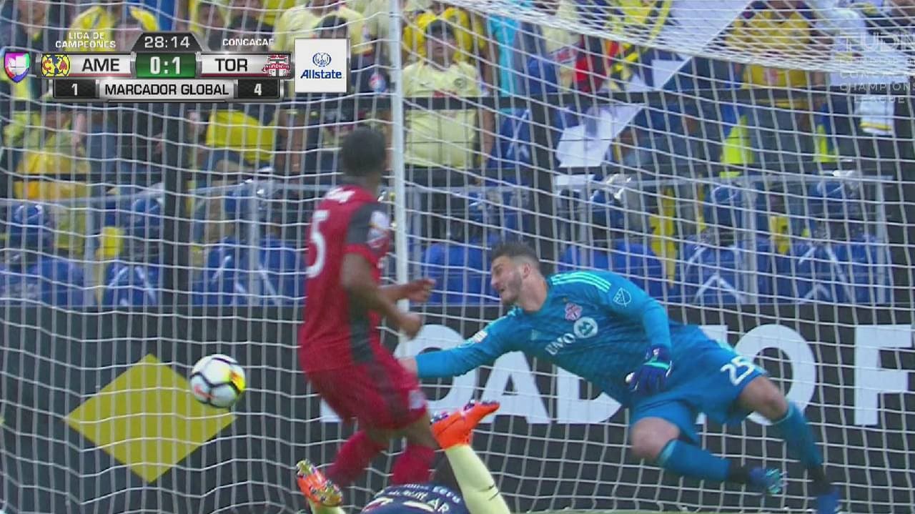 Apenas corría el minuto 27 cuando el portero del Toronto FC hizo una desviada brutal, que le habría dado oxígeno al América en caso de no hacerla.