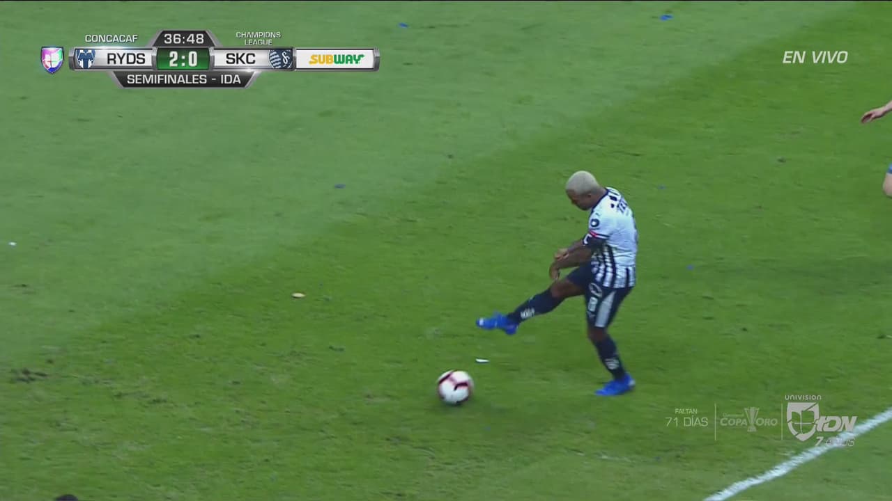 Carlos Rodríguez tenía para disparar pero se la tocó a Pabón que sacó un calcetinazo y luego Rogelio le pegó de primera a un costado de la cabaña del Sporting KC.