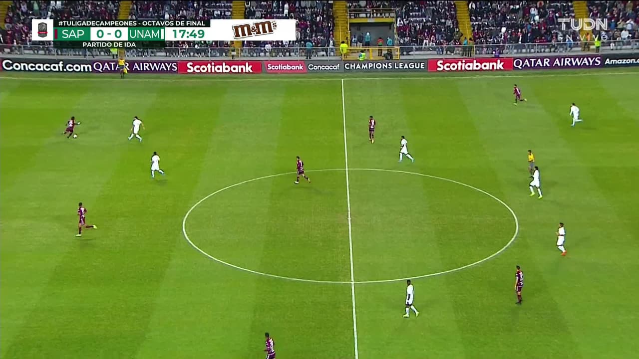 Jimmy Marín (Saprissa) remata al poste derecho| disparo de cabeza a quemarropa desde el lado derecho. Asistencia de Marvin Angulo con un centro al área.