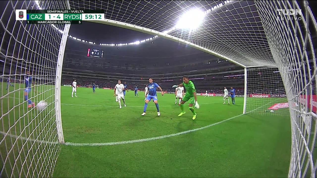 Luis Romo (Cruz Azul) remata al poste derecho| disparo de cabeza desde muy cerca. Asistencia de Yoshimar Yotún con un centro al área tras un saque de esquina.