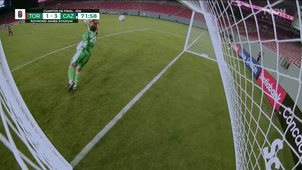 Santiago Giménez (Cruz Azul) remata al poste izquierdo| disparo de cabeza desde el centro del área. Asistencia de Ignacio Rivero con un centro al área.