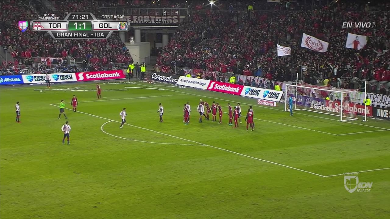 Giovinco lo intentaría más tarde de tiro libre, su disparó supero la barra y se ajustó al palo pero una volada de Jiménez la desvió al tiro de esquina.