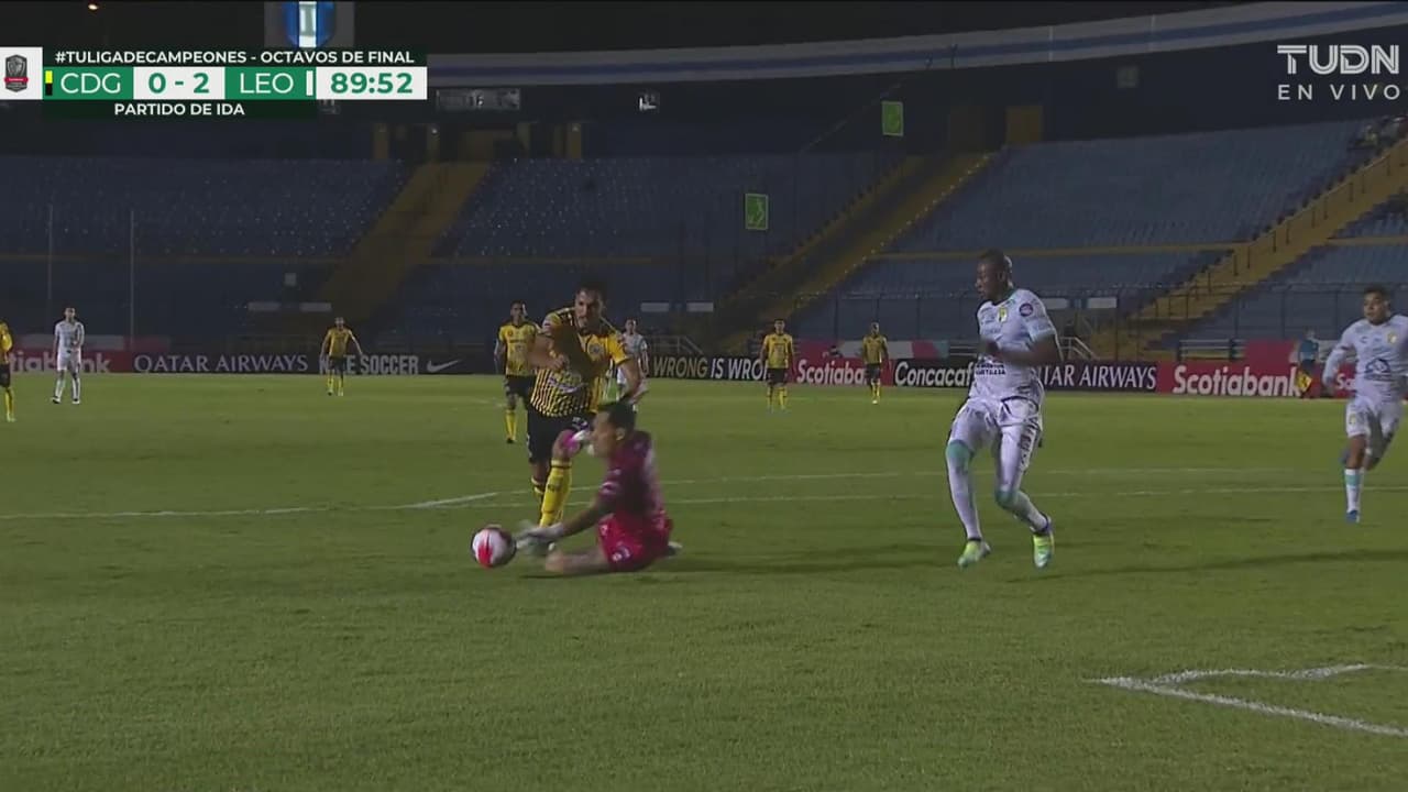 Luis Ángel quiso encarar al arquero del León, quien desarmó al delantero con un movimiento oportuno.
