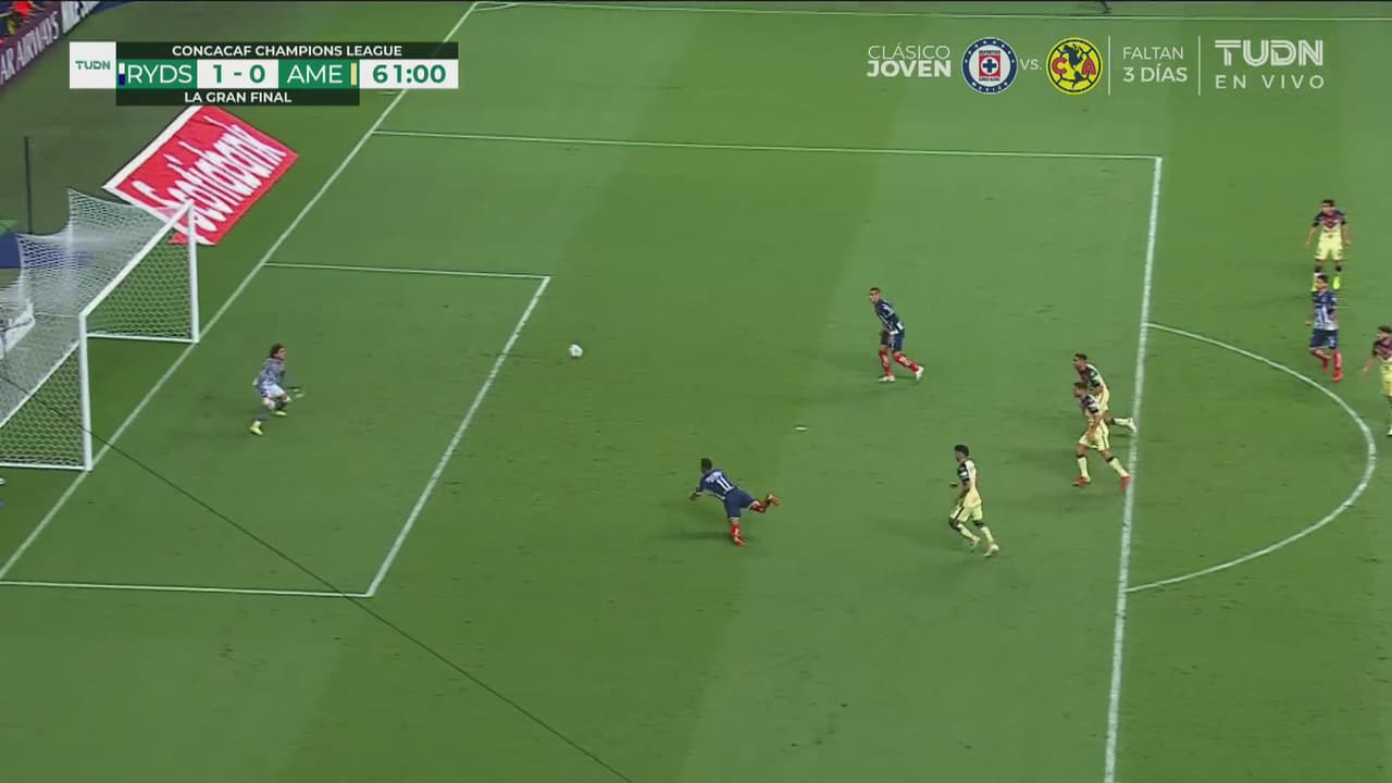 El atacante se encuentra completamente solo, pero no puede concretar el segundo de Rayados.