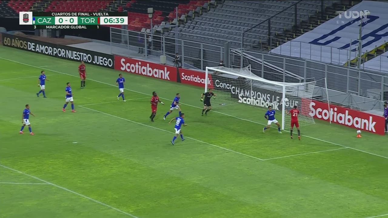 El cabezazo de Jonathan Osorio buscó colarse al segundo poste del arco de Cruz Azul al 6’.