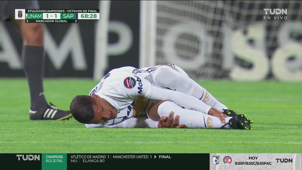 El jugador de Pumas parecía haber sufrido una lesión grave, pero volvió seguir en la batalla ante Saprissa.