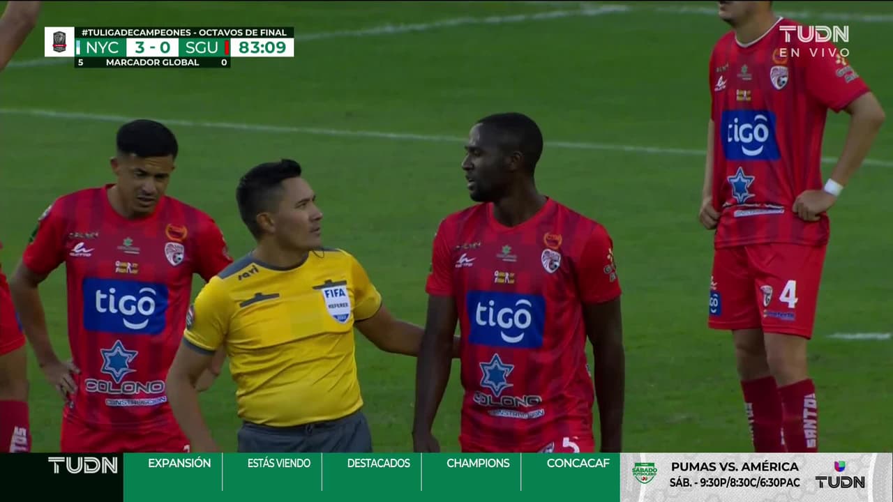Alvin Bennett (S. de Guápiles) ha recibido una tarjeta roja por pelearse.
